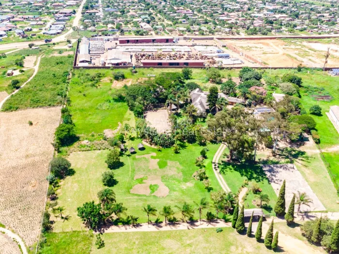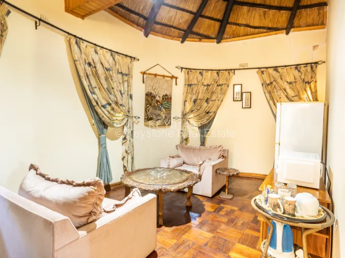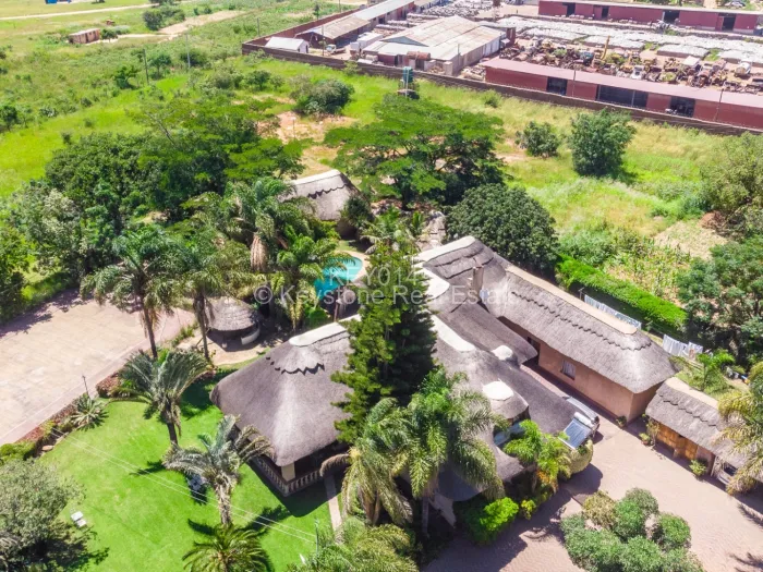 Nestled on a sprawling 3-hectare estate in the serene Spitzkop area, just off Bulawayo Road (A5), this property offers a unique blend of natural beauty, luxurious accommodations, and exceptional event spaces. Escape the city's hustle and bustle and discover a hidden gem where tranquility and opportunity abound. It comprises of: